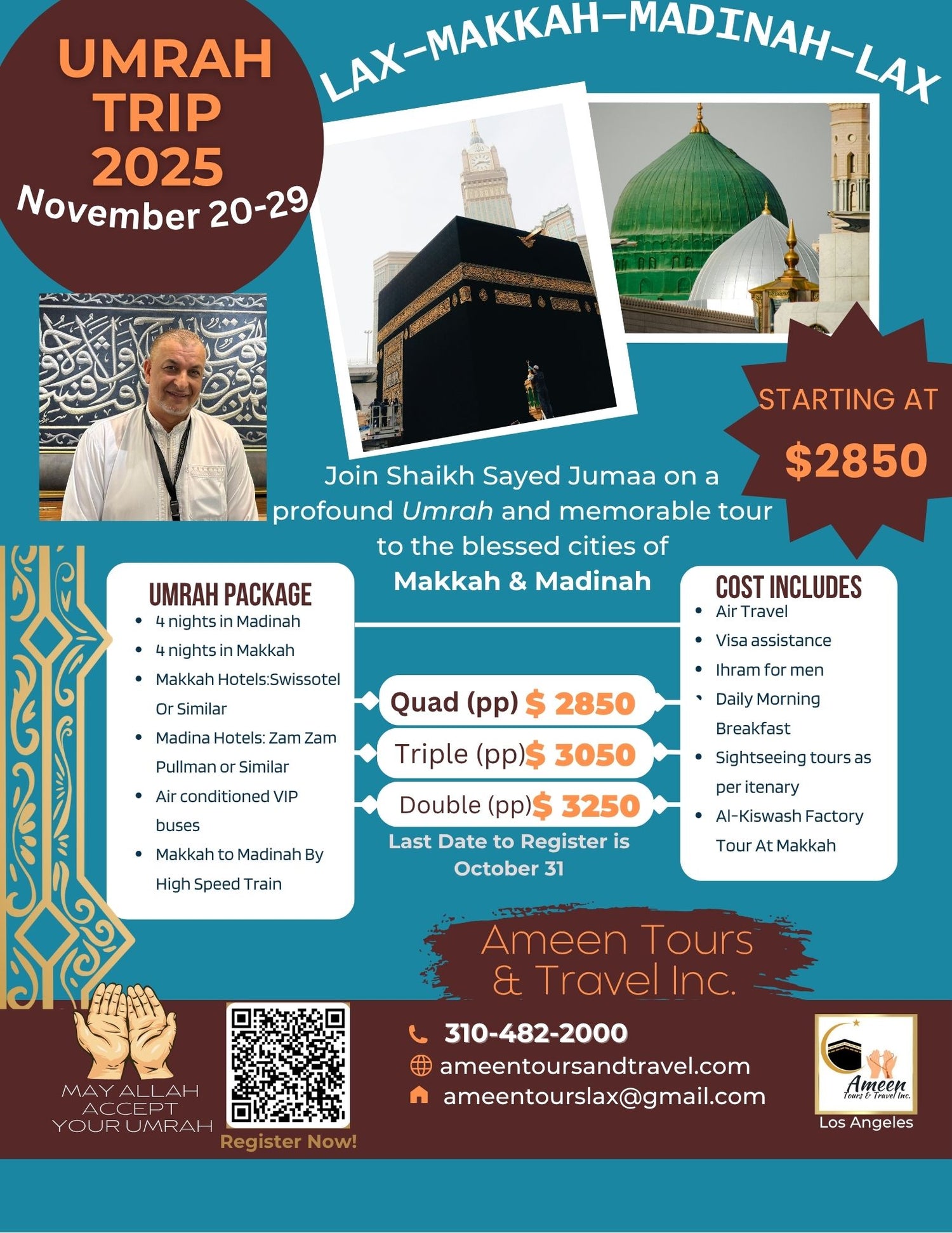 Join Shaikh Sayed Jumaa on a Profound Umrah and memorable tour to the blessed cities of Makkah & Madinah upcoming November 20-29